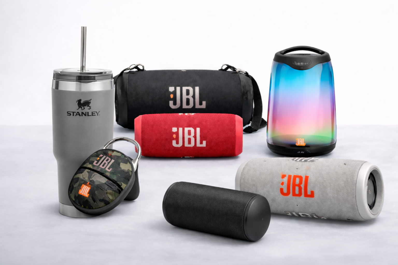 Caixinhas de Som , copos e garrafas